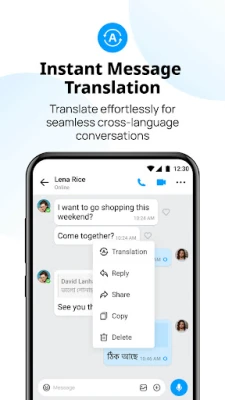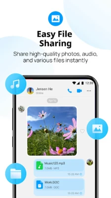 imo Messenger nadilazi uobičajene poruke, transformirajući način na koji dijelite. Šaljite fotografije, videozapise, glasovne poruke i dokumente svih vrsta – od .DOC do .PDF – sve u originalnoj kvaliteti i bez napora. Vaša cjelokupna povijest poruka i datoteke sigurno su sinkronizirane u imo Cloudu, oslobađajući prostor na vašem telefonu i osiguravajući da su vaše uspomene i važni podaci uvijek dostupni. Nema više jezičnih barijera; uz značajku trenutnog prevođenja poruka, imo omogućuje glatke razgovore preko različitih jezika, povezujući vas globalno s lakoćom i brzinom, čak i uz slabiju mrežnu vezu.