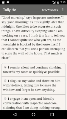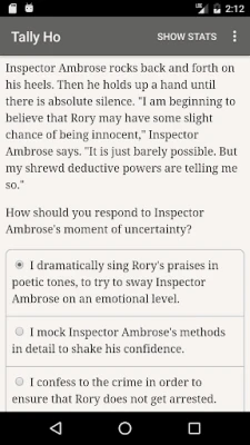 Zakoračite u očaravajući svijet igre Tally Ho, interaktivne komedije manira koju je stvorio Kreg Segall. Sastavljena od impresivnih 600.000 riječi, ova pustolovina se u potpunosti odvija u vašoj mašti. Bez grafike ili zvučnih efekata, vaša kreativnost je jedini scenograf i zvučni inženjer, a svaki izbor koji donesete oblikuje jedinstvenu priču punu intriga i duhovitosti.