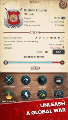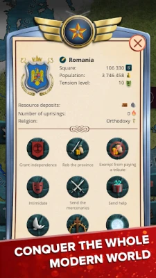 No, put do svjetske dominacije nije bez izazova. Suočite se s pobunama separatista, branite svoje resurse od pljačkaša i vodite grandiozne ratove protiv rivalskih sila. Samo najlukaviji stratezi i najsposobniji vođe mogu nadvladati ove prepreke i osigurati prosperitet svoje domovine. Želite li unaprijediti svoje iskustvo igranja i otključati još veće mogućnosti? Uz premium verziju, dobivate potpunu slobodu izbora – igrajte kao bilo koja dostupna zemlja, uživajte u igri bez ometajućih oglasa te ubrzajte tijek vremena s ekskluzivnim gumbom za +100% brzinu, omogućujući vam da brže realizirate svoje strategije i osvajanja.